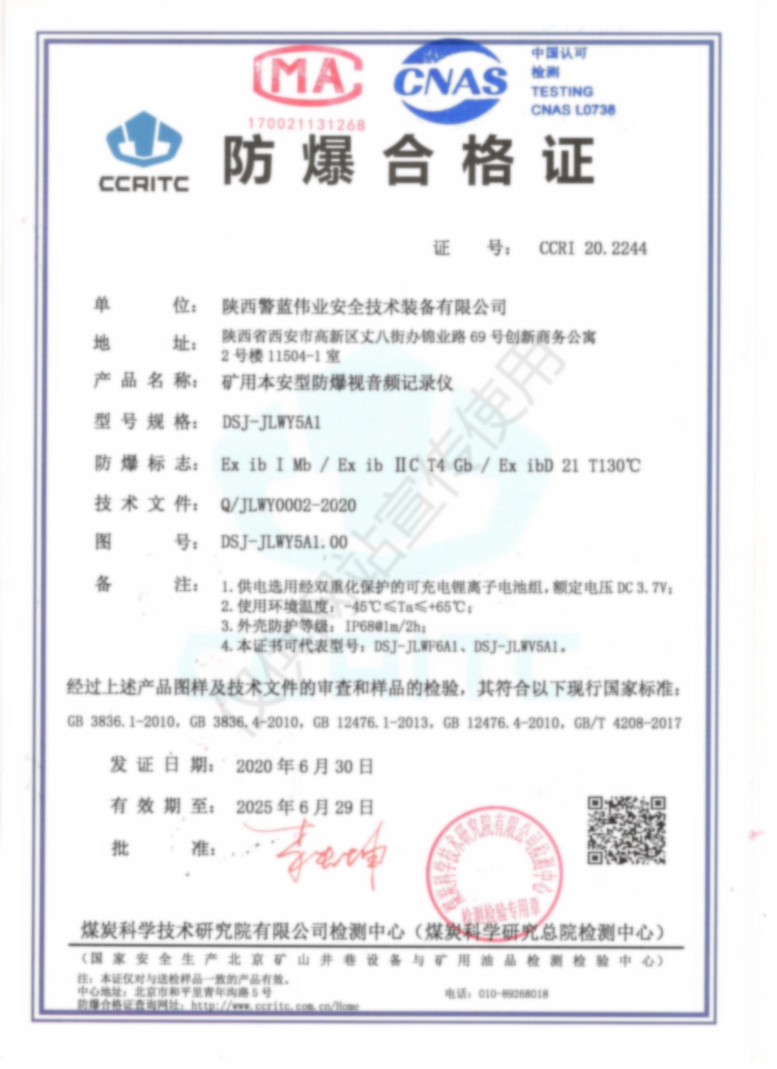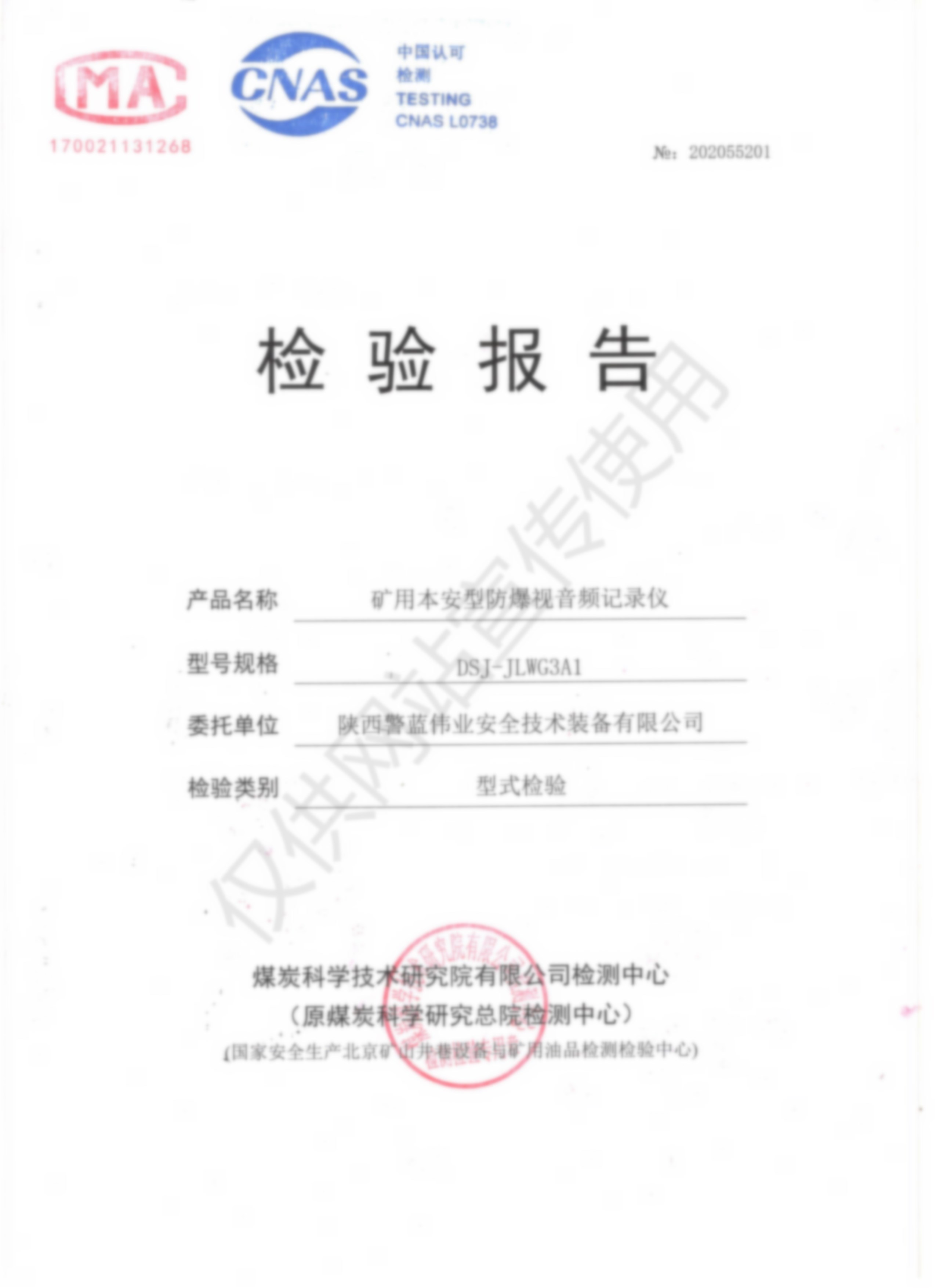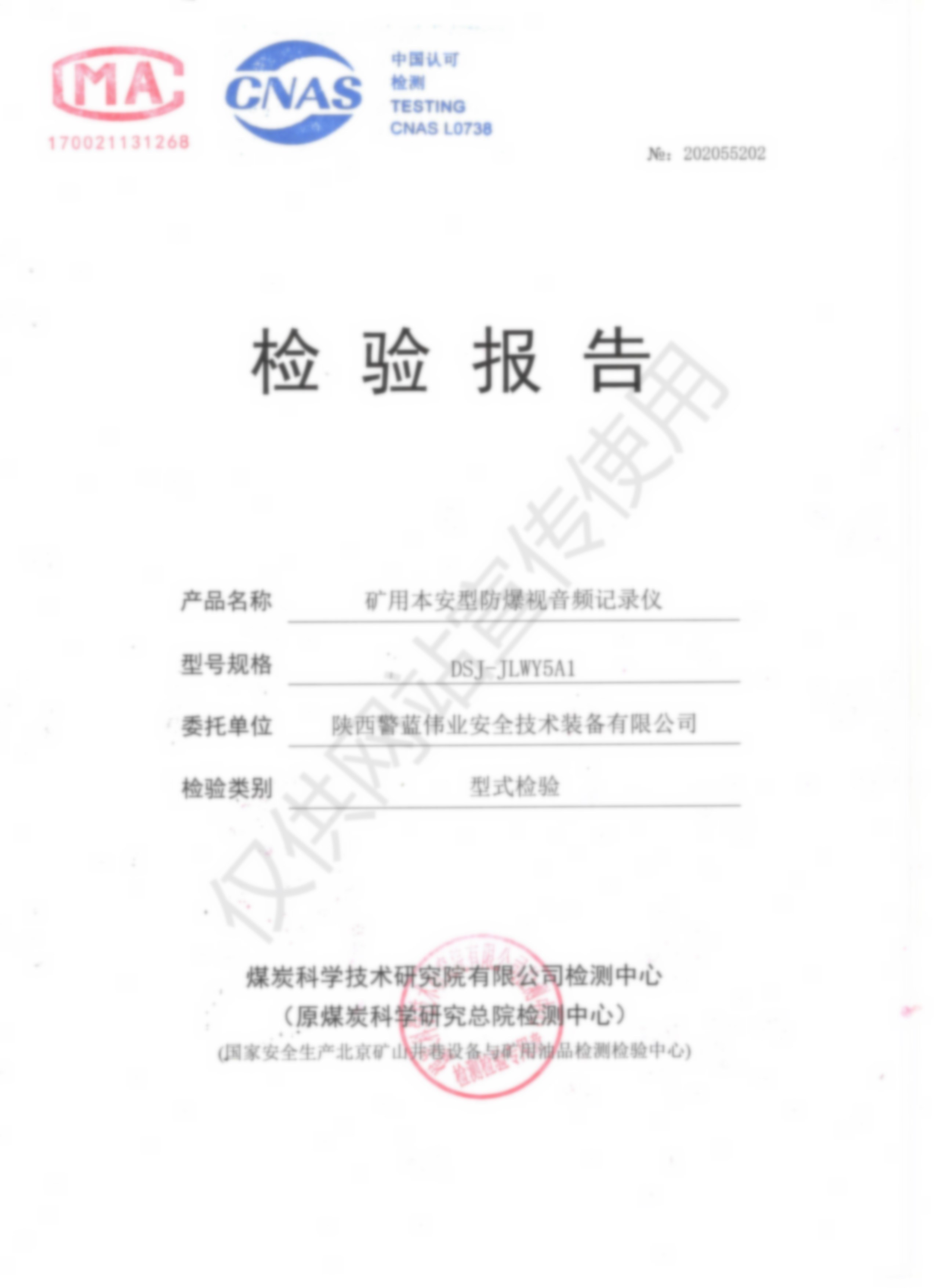 礦用本安型防爆視音頻記錄儀DSJ-JLWY5A1檢驗報告