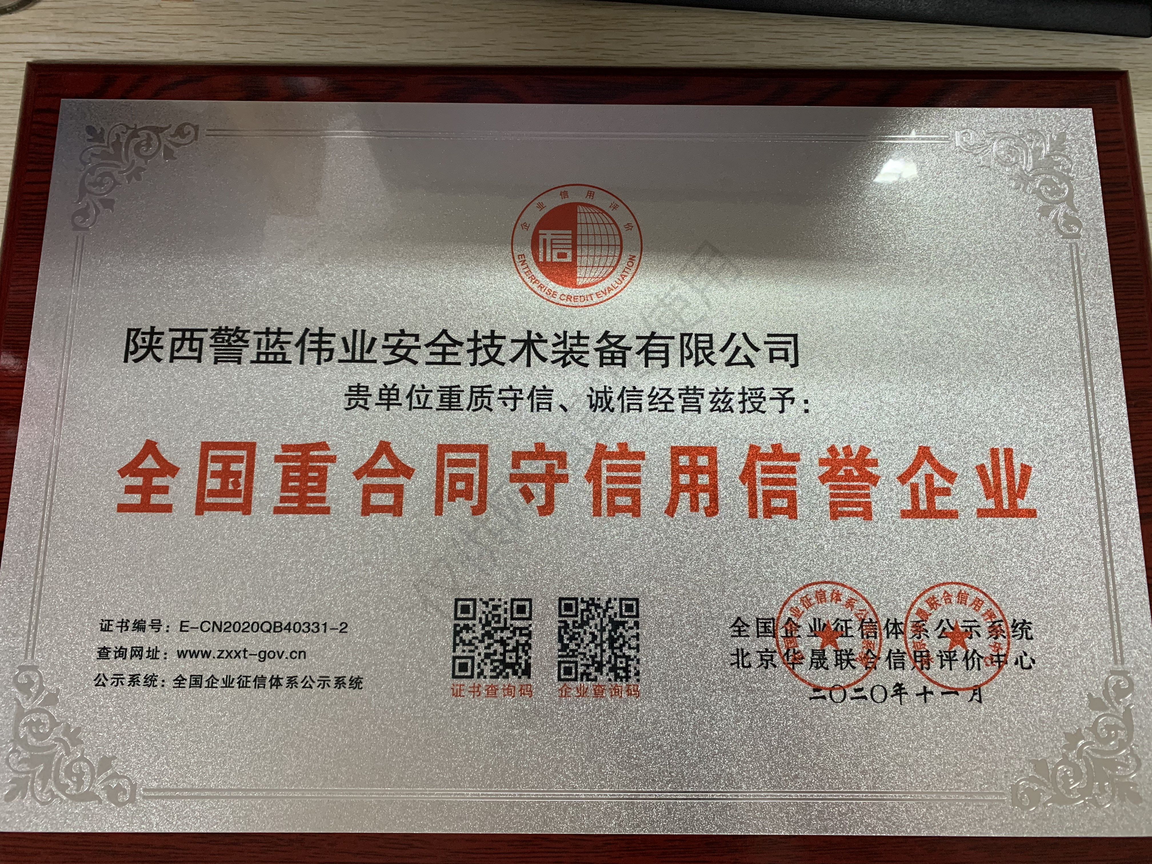 全國重合同守信用信譽企業