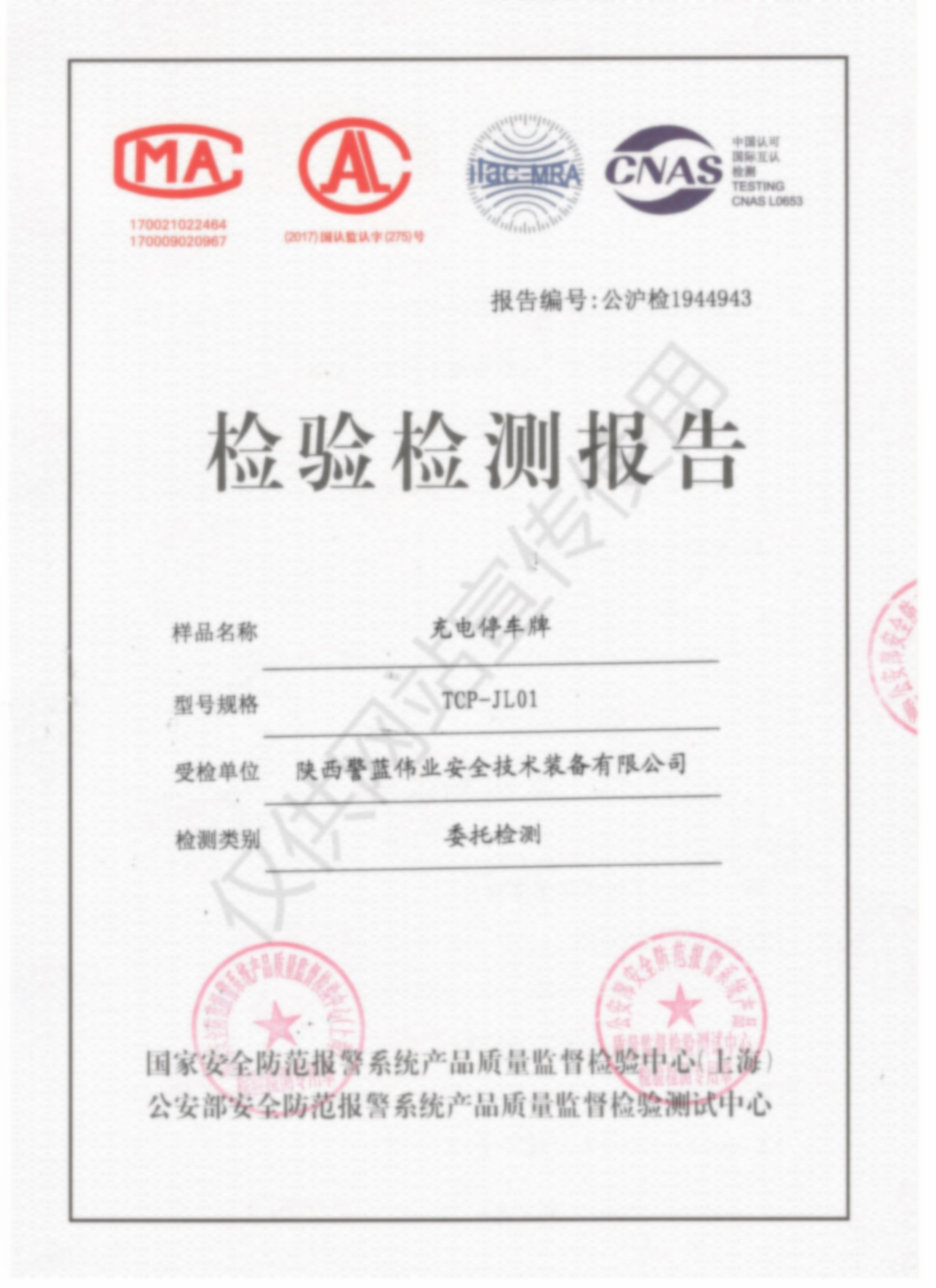 檢驗檢測報告-充電停車牌