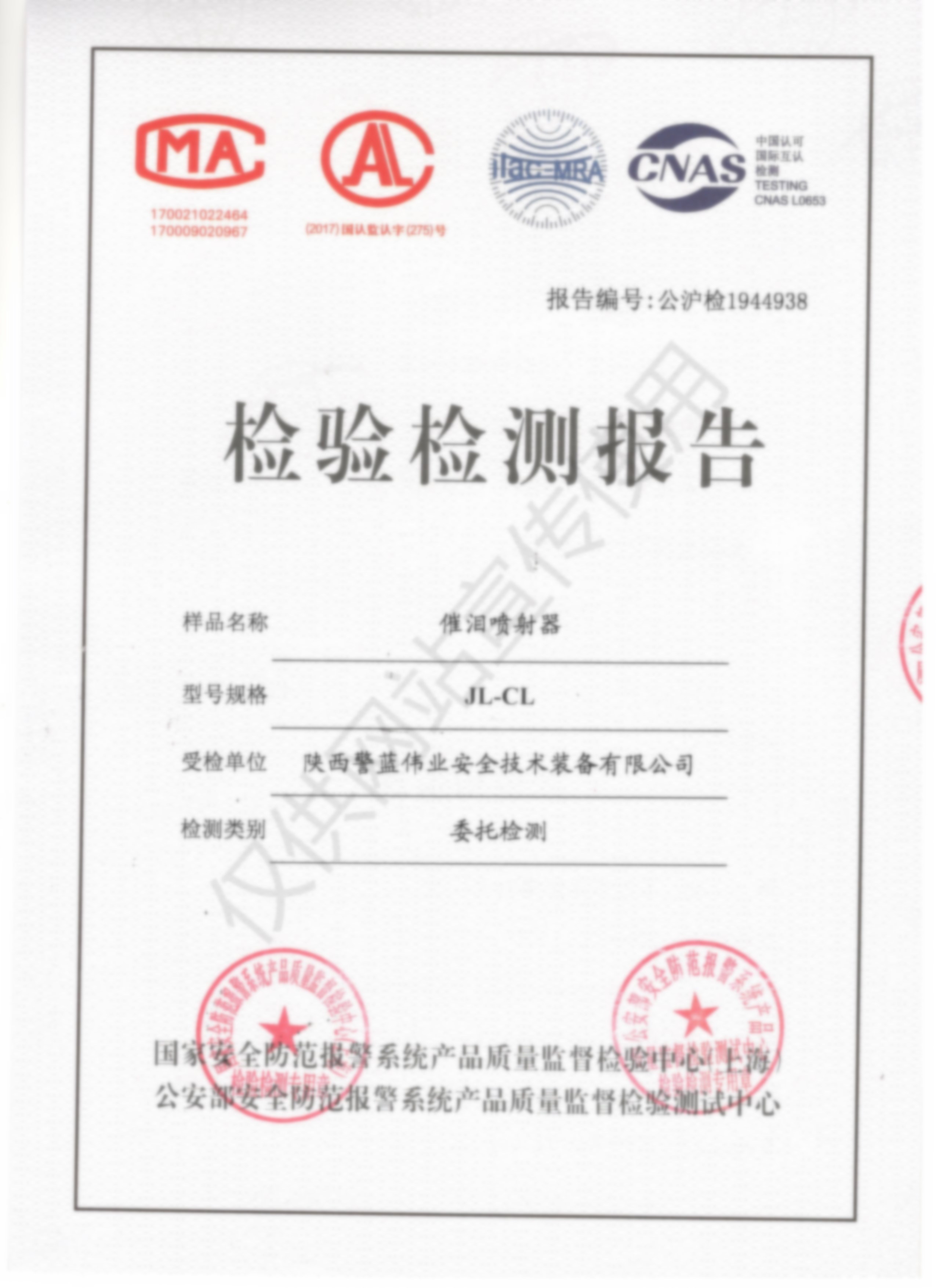 檢驗檢測報告-催淚噴射器