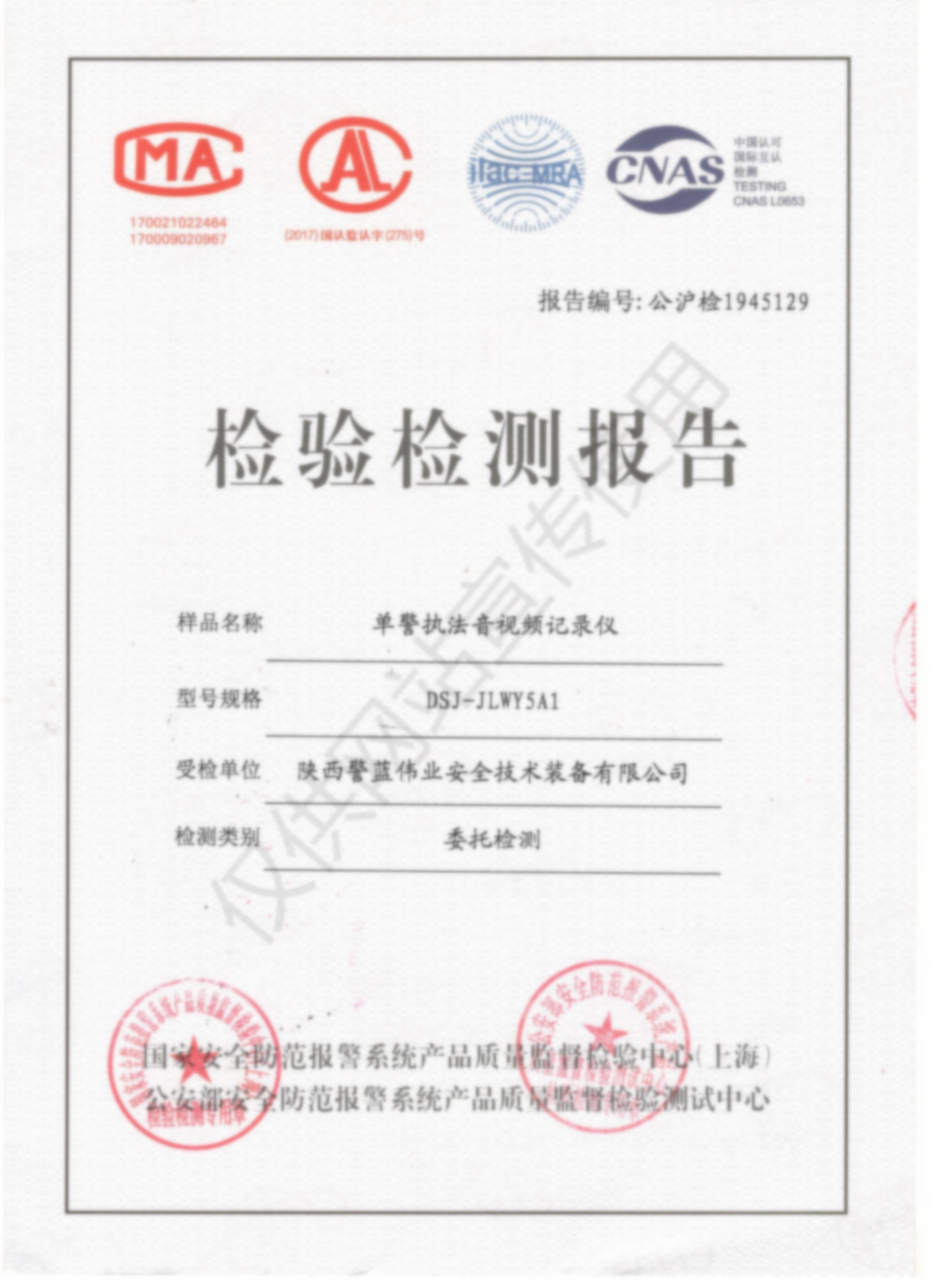 檢驗檢測報告-單警執法音視頻記錄儀DSJ-JLWYY5A1