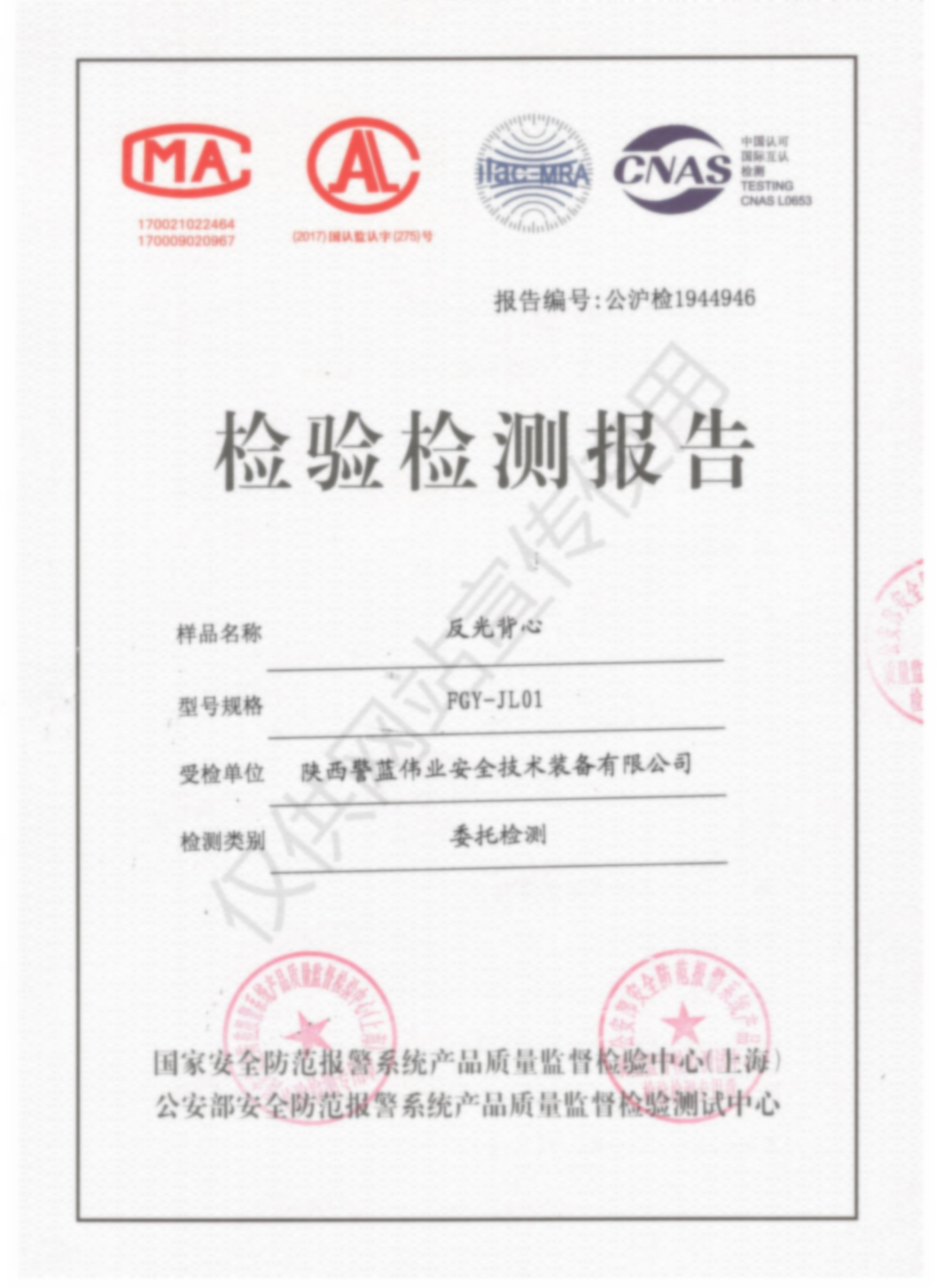 檢驗檢測報告-反光背心
