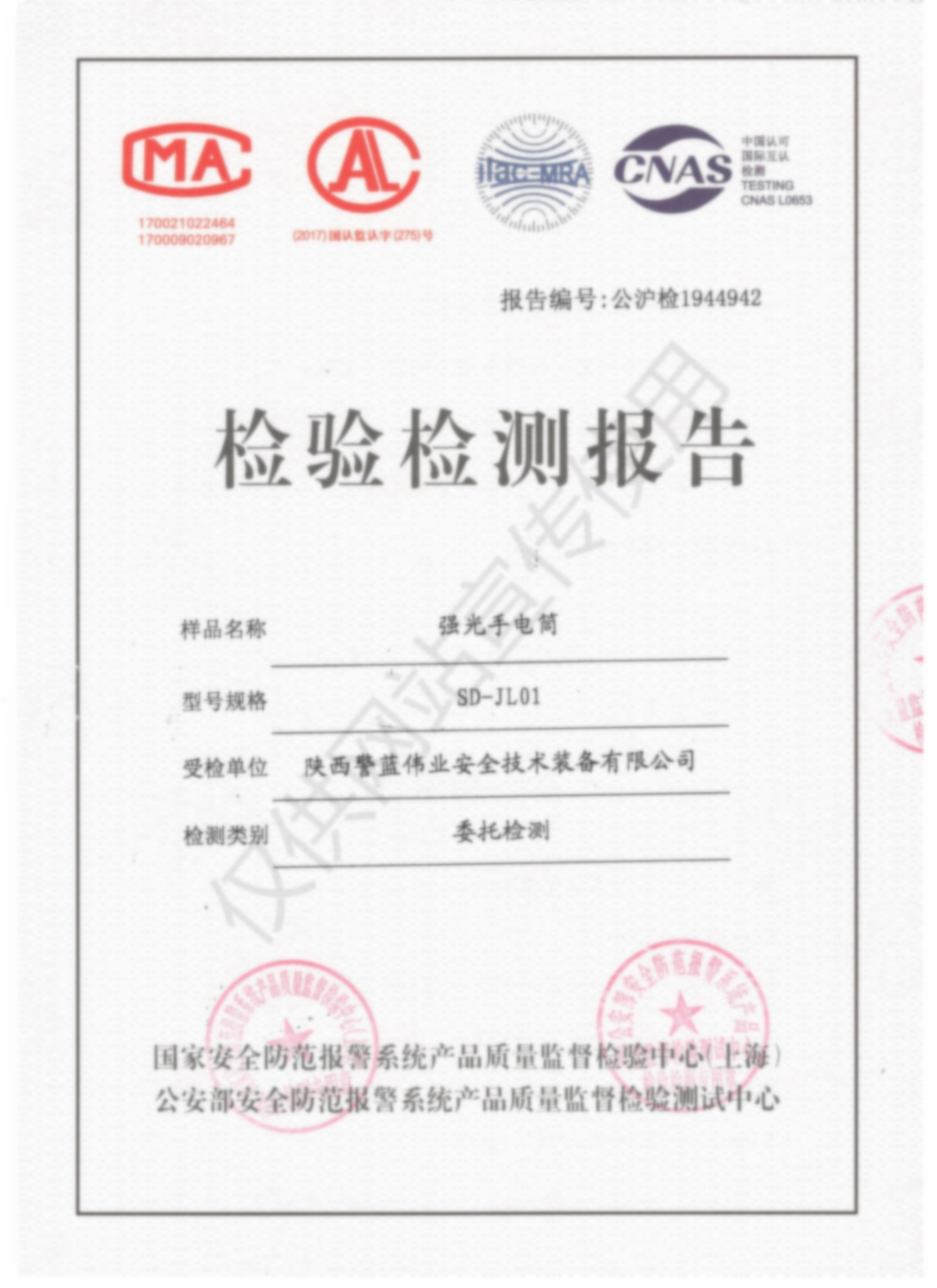 檢驗檢測報告-強光手電筒