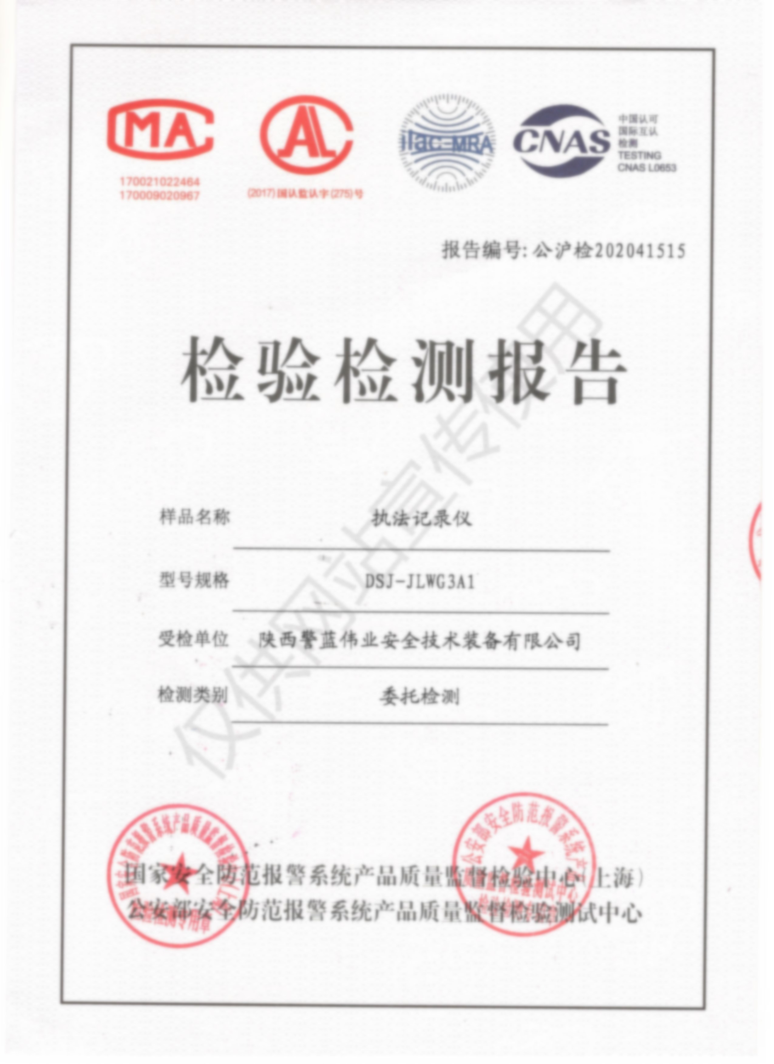 檢驗檢測報告-執法記錄儀DSJ-JLWYG3A1